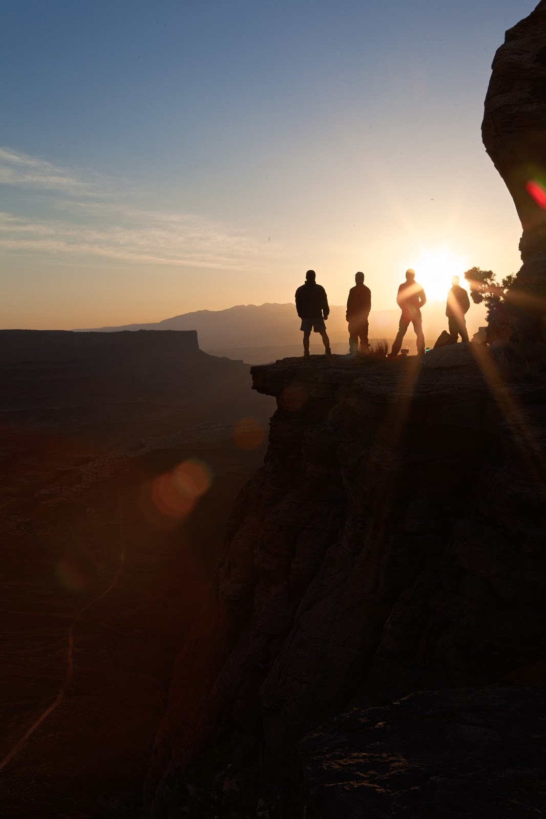 Looking at our clock, we decided there was a little more time to explore Canyonlands before heading back to reserve our official campsite for the night. Mesa Arch was our next target. Words cannot truly describe how stunning this arch is. The arch perched right on a cliff edge. Encompassed by the arch itself is all of Canyonlands and its features.