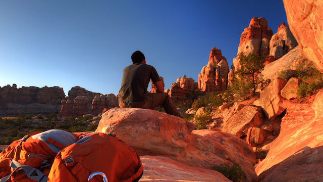 This is a self-picture from a morning hike in The Needles in Canyonlands National Park during sunrise.